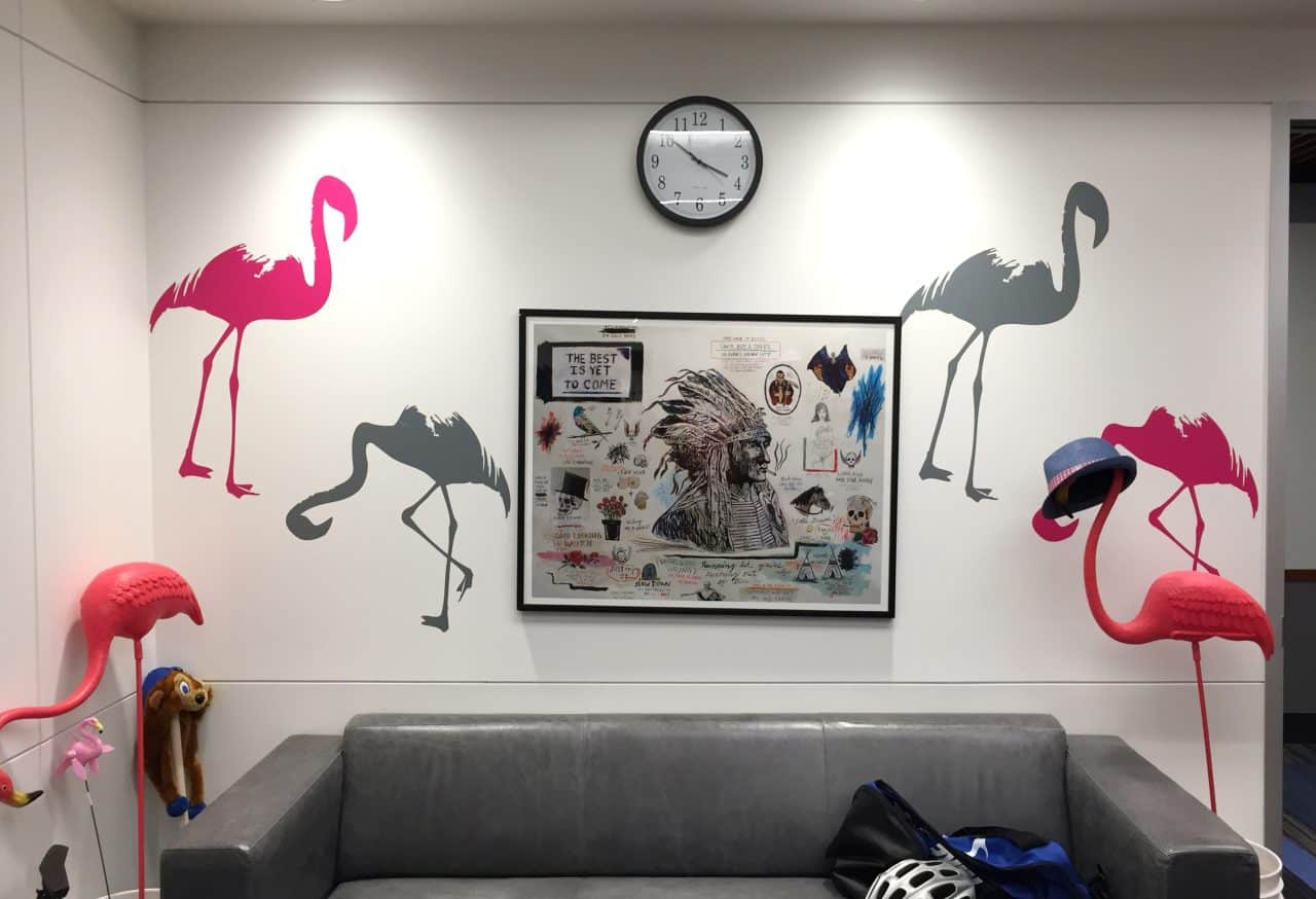 We are excited to share this project we installed for Joe Maddon, Manager of the Chicago Cubs. Joe wanted to bring a little bit of life to his Wrigley Field office by having us install a 125” x 64” sunset mural along with three 32” x 48” metal prints. The metal prints were installed on top of the mural, standing off the wall about a half inch, allowing a bit of a three-dimensional look to a flat wall. See the before and after images below.