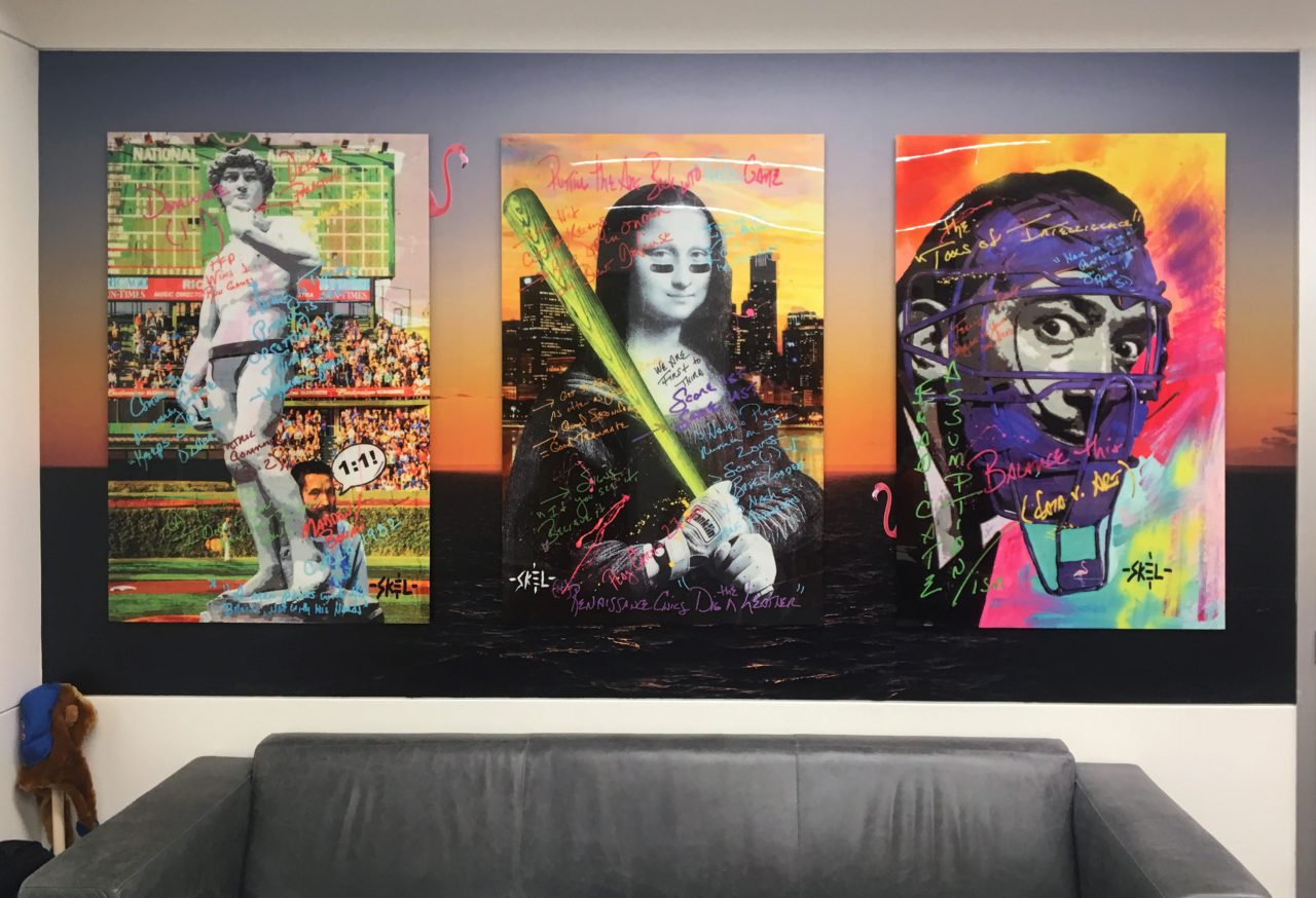 The metal print artwork displayed is part of Joe Maddon’s commissioned art collection and is sold to benefit his charity, Respect 90. This amazing charity provides children and families opportunities to develop championship attitudes through sports, academics and community involvement. Learn more about Respect 90 at www.respect90.org and help support by purchasing individual pieces from www.MaddonArt.com. Use promo code neil and receive 25% off your order.