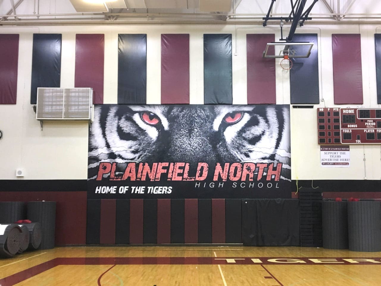 Our graphics department has been growing exponentially and we are very excited to share what we have done. Recently we have been at Plainfield North High School installing several wall graphics throughout the school. We had two projects that included some fantastic larger graphics in the school’s Field House and Gymnasium. Both these projects were installed on precast concrete. The Field House graphic is 100′ x 10′ and the Gymnasium graphic is 30′ x 15′. We hope to have our graphics in many more schools throughout the Chicago-land area and beyond.
